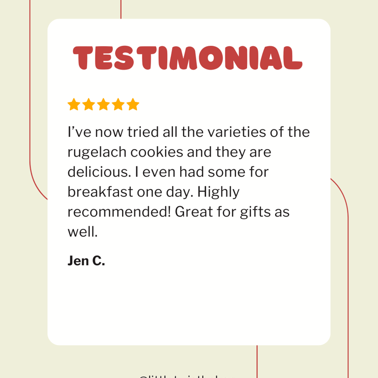 All Food products by little twist bakery are produced in a private residence that is not subject to governmental licensing or inspection.